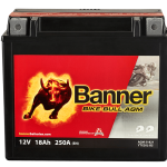 Banner Bike Bull AGM startbatteri till motorcyklar, mopeder, ATV, fyrhjulingar, vattenskotrar, gräsklippare, åkklippare mm. Bike Bull AGM är underhållsfria batterier med modern AGM-teknik (AGM = Absorbent Glass Mat). Syran sugs upp av glasfibermattan och binds i denna på ett läckagesäkert sätt.
